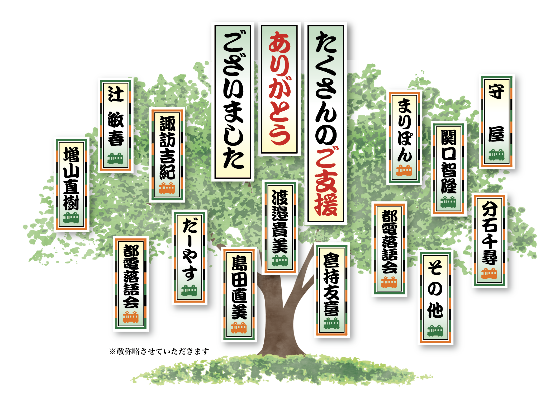 [都電落語会クラウドファンディングにご支援いただいた皆様へ、心よりお礼申し上げます。]