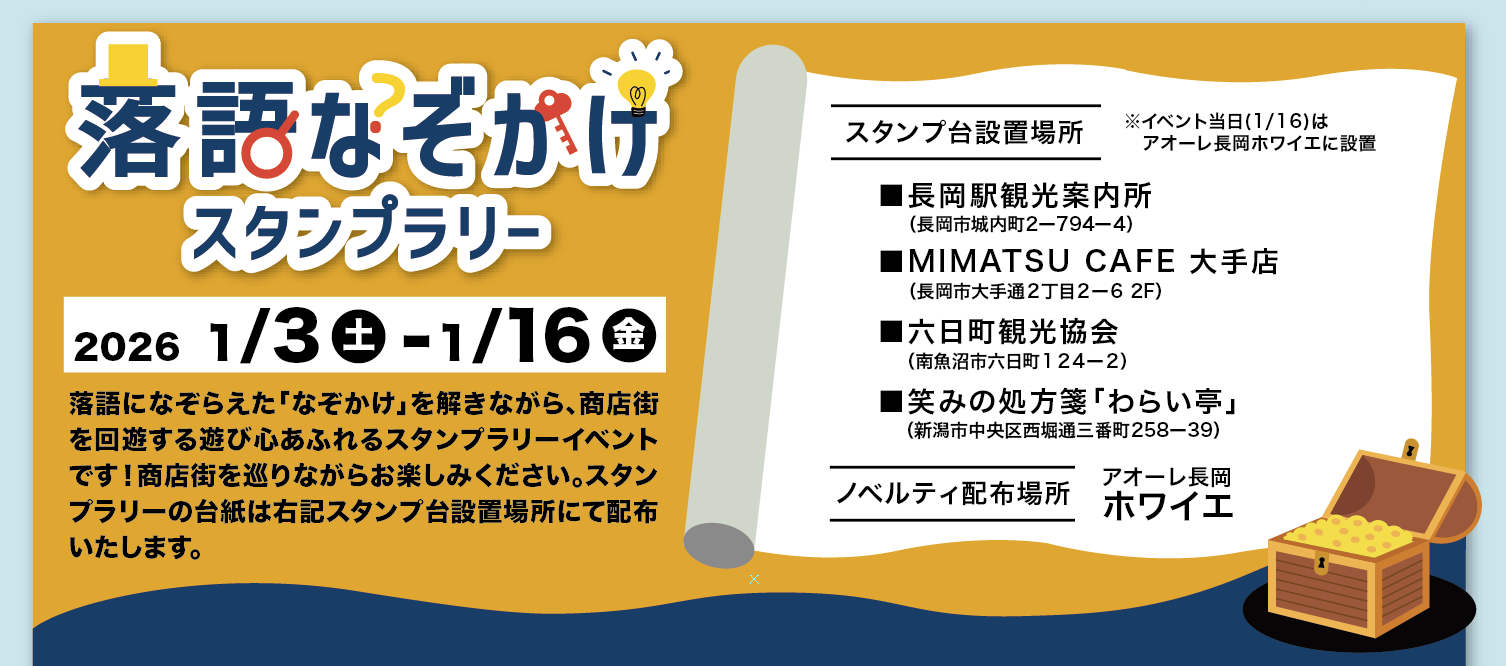 下記4箇所に加え、「長岡観光コンベンション協会」にも設置していただいています。