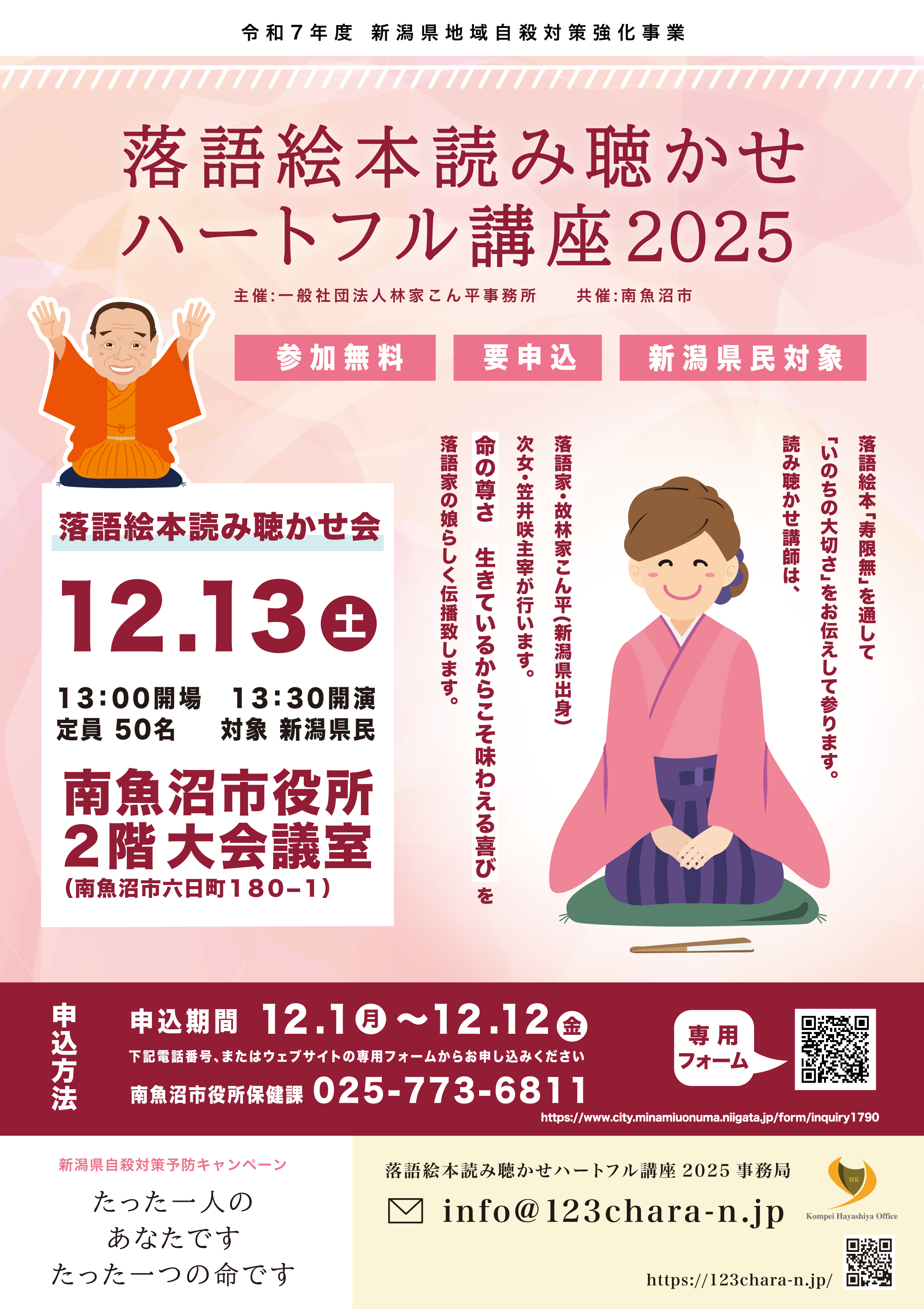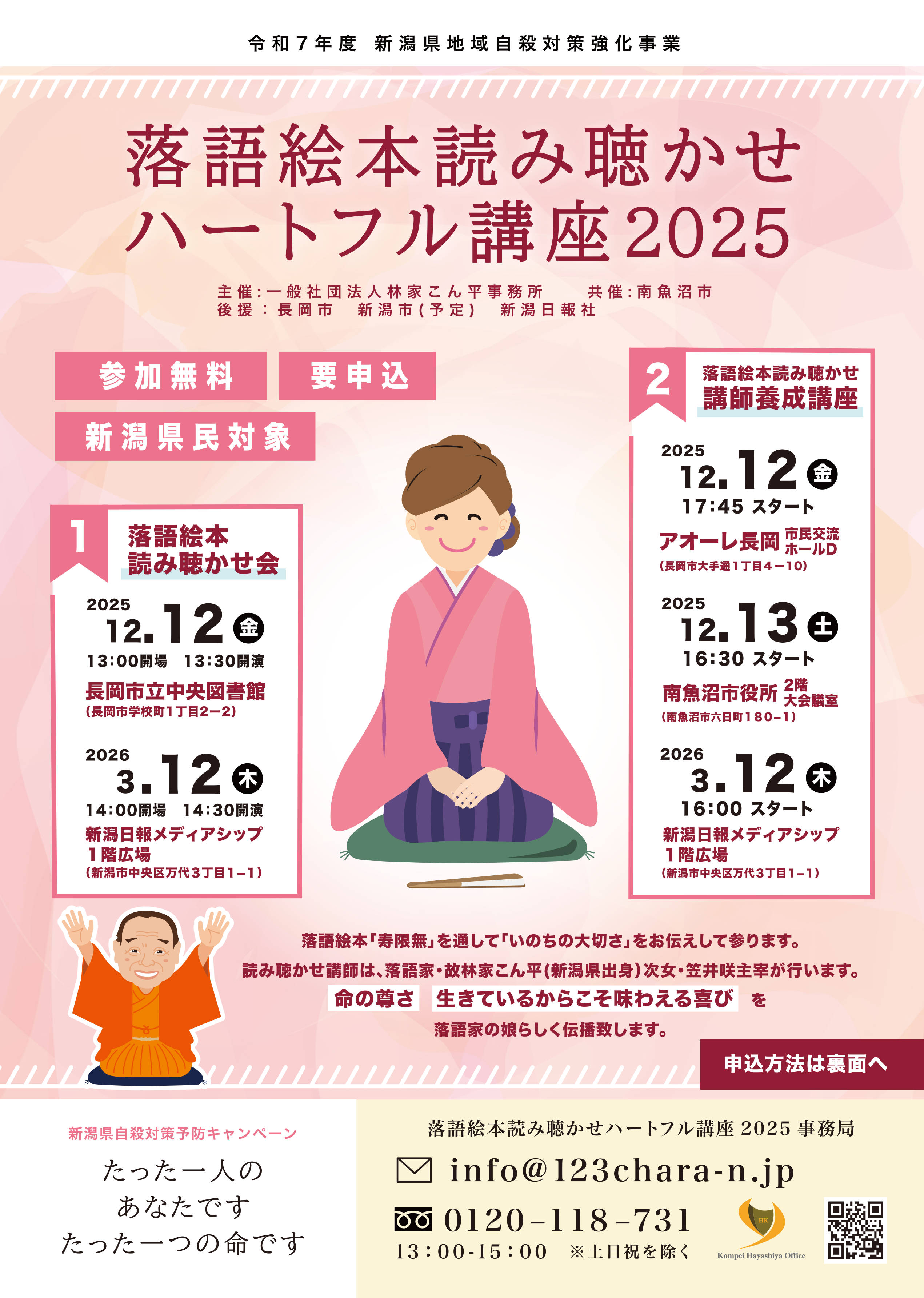落語絵本の読み聞かせ、メンタル心理カウンセラーによる講演等を通し